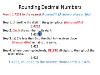 The primary rule involved in rounding decimals to the nearest whole number is look at the tenths digit. 4 Divide the left most number of the dividend by the divisor in this case divide 4 by 32. Rounding to nearest ten hundred and thousand.